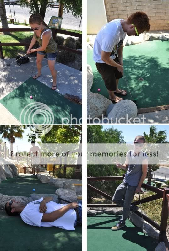 And then....off to Mountasia Family Fun Center in Santa Clarita!!! I have about 9 coupons that get me "plus 3 other friends" a free game of mini-golf :) They expire in September so they'll be seeing me again real soon. I went with my good friend Alain, my brother and 2 of his roomates, Dave and Matt :) I had so much fun with these guys..they were crackin' me up all day.